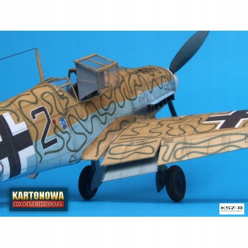 Картонна модель німецького винищувача Messerschmitt Me 109G-2/trop у «пустельному» фарбуванні та маркування машини з 2./JG 77 (Туніс, 1943). Модель, крім іншого, має розділені поверхні управління (елерони, закрилки, керми).
