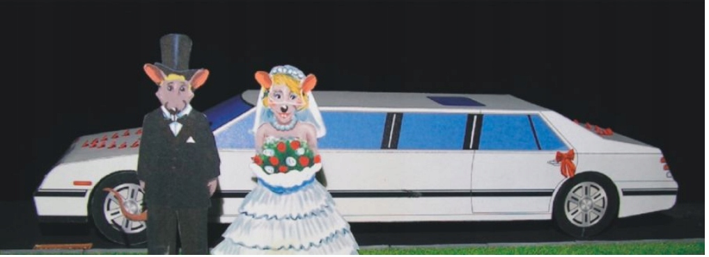КАРТОННА МОДЕЛЬ БІЛИЙ ЛІМУЗИН МОЛОДА ПАРА ВЕКТОР