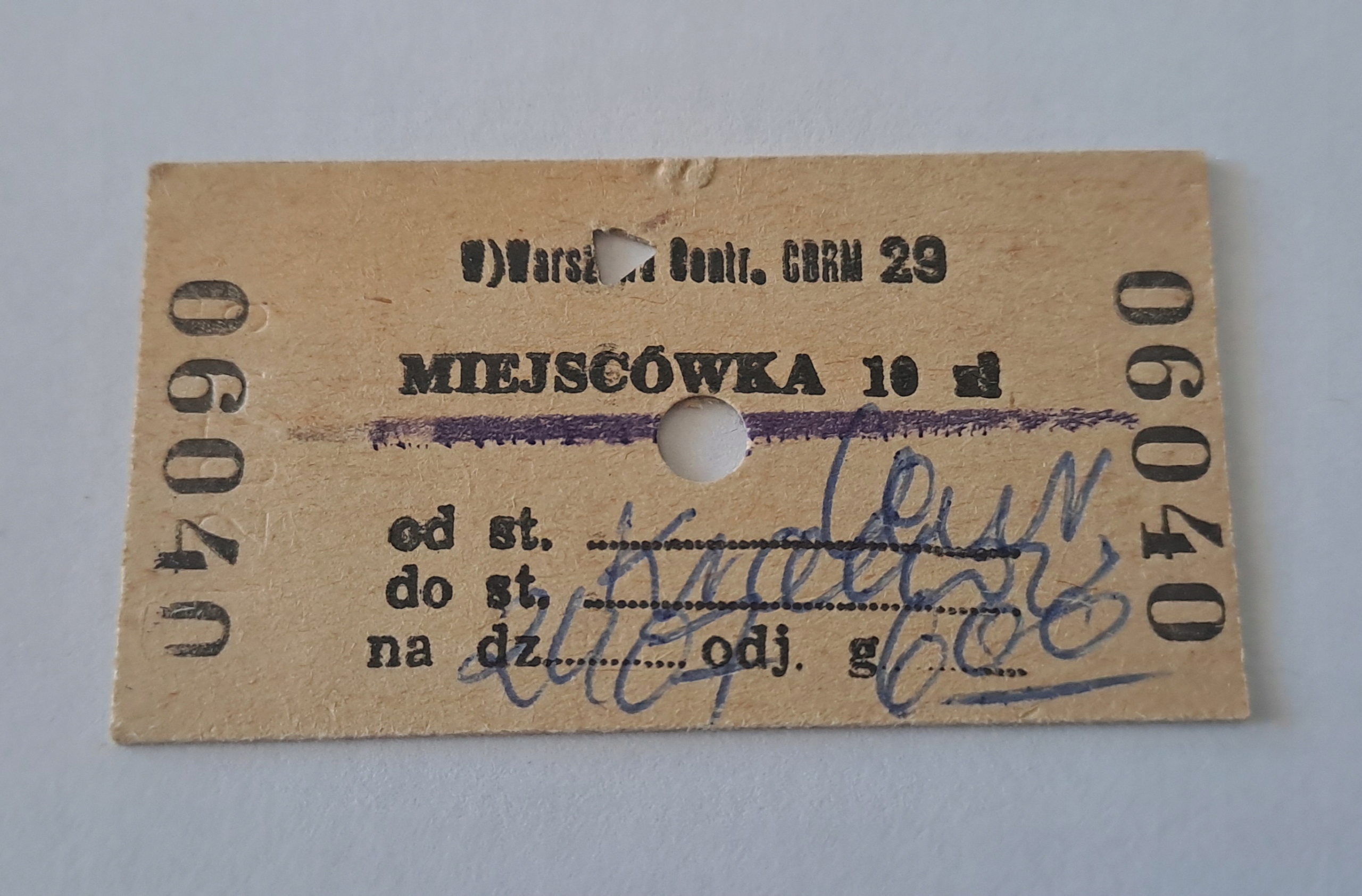 КАРТОННИЙ КВИТОК ЗАЛІЗНИЧНИЙ ПКП ЦЕНТРАЛЬНА ВАРШАВА - КРАКІВ МІСЦИНА