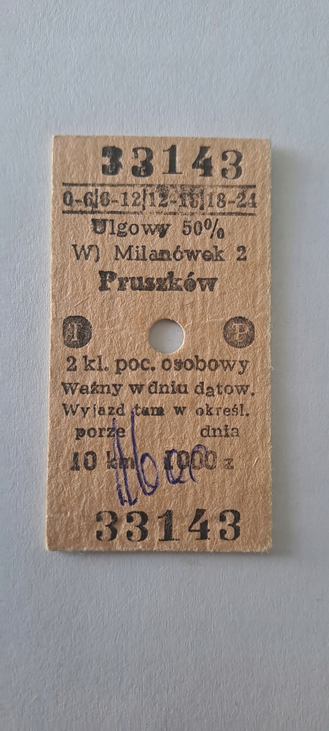 КАРТОННИЙ КВИТОК ЗАЛІЗНИЧНИЙ ПКП МІЛАНІВОК - ПРУШКІВ / ЯКТОРІВ