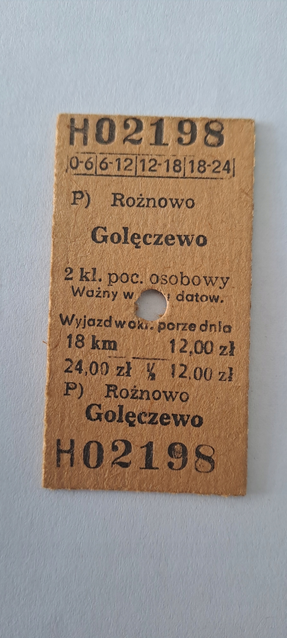 КАРТОННИЙ КВИТОК ЗАЛІЗНИЧНИЙ ПКП РІЖНО - ГОЛУБЧАСТО