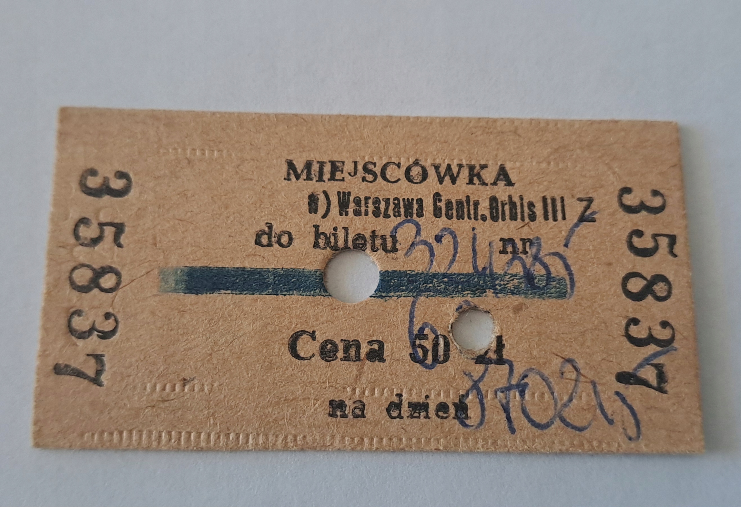 КАРТОННИЙ КВИТОК ЗАЛІЗНИЧНИЙ ПКП ВАРШАВА ЦЕНТРАЛЬНА ОРБІТА - КОЛИ МІСЦЕВА