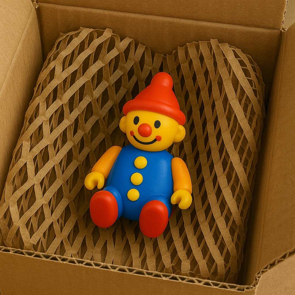 Завдяки гнучким шматкам картону наповнювач адаптується до форми речей, забезпечуючи їх максимальний захист.