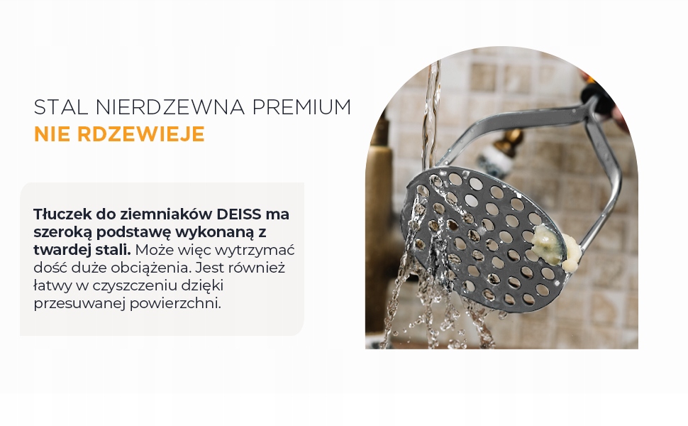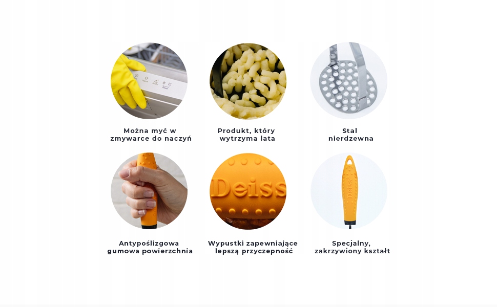 - ПОЛЕГШУЄ ВАШУ РОБОТУ З ПЮРЕ: ні в якому разі не можна товкти картоплю в пюре пошкодити руки, це не повинно бути важко. Ми хочемо, щоб ваше життя на кухні було максимально простим. Наша картопледавка зі зручною гумовою рукояткою зробить розтирання легким вітерцем.