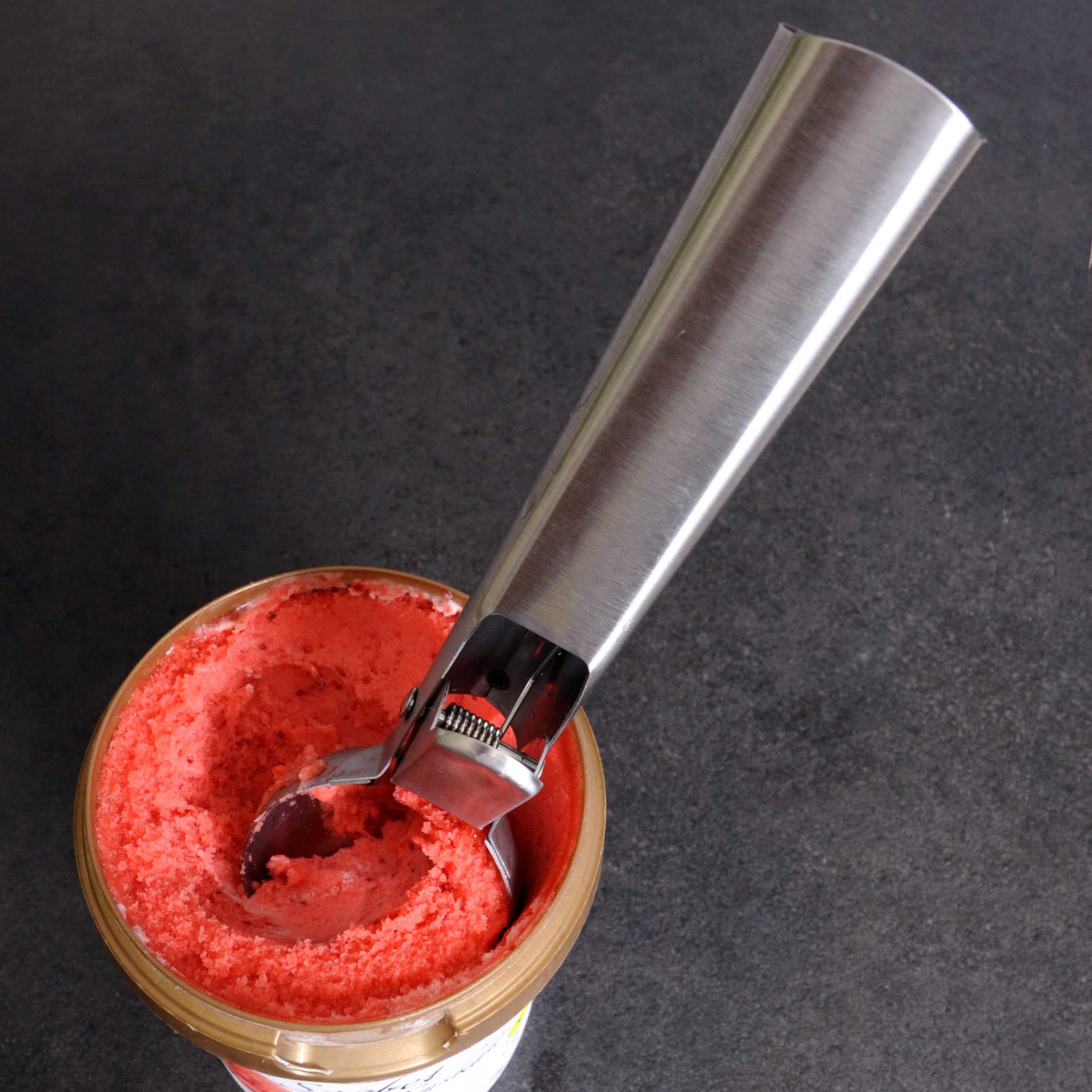 Морозиво чи картопляне пюре не прилипають до черпака, що полегшує формування ідеальних кульок, а спеціально розроблений механізм полегшить витягування сформованих кульок.
