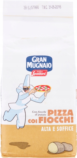 Ми пропонуємо високоякісне борошно для піци Pizza coi Fiocchi di patate від Spadoni. Це ретельно відібране борошно ідеально підходить для приготування смачної та хрусткої піци, яка порадує вашу родину та гостей. Борошно з картопляними пластівцями. Вони забезпечують хрусткість і дозволяють довше зберігати готову піцу. Цю суміш також можна використовувати для випічки пінси та хліба