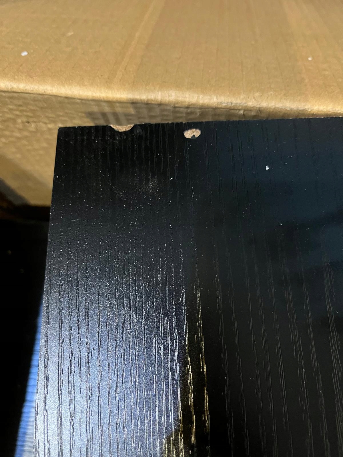 Товар має зламану передню частину з однієї шухляди та сколи на дошках. Немає посібника користувача, тому неможливо перевірити, чи всі гвинти присутні.