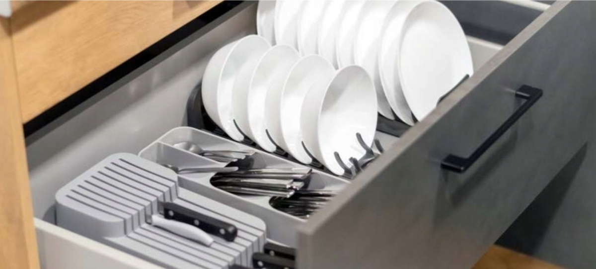 Організатор для тарілок - це функціональний продукт, призначений для комфорту та естетики вашої кухні або їдальні. Це унікальна вставка для ящиків , що дозволяє легко та безпечно зберігати пластини. Пластикові ручки доповнюються ними, які забезпечують комфорт використання. Завдяки спеціально розробленій системі пластини встановлюються вертикально, що максимально збільшує простір у ящику і полегшує їх видалення. Він може бути вимитою в посудомийній машині, що дозволяє швидко та гігієнічного обслуговування.