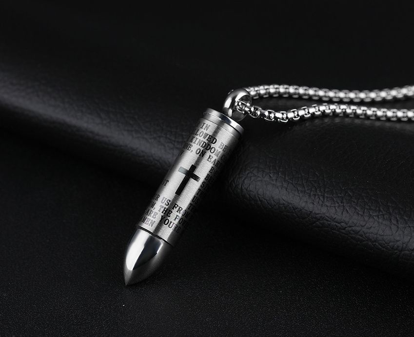 ✅ підвіска виглядає дуже елегантно і зі смаком - він ідеально підходить як світильник шиї як для жінок, так і для чоловіків. картридж/ куля , на якій вміст молитви вигравіровано,