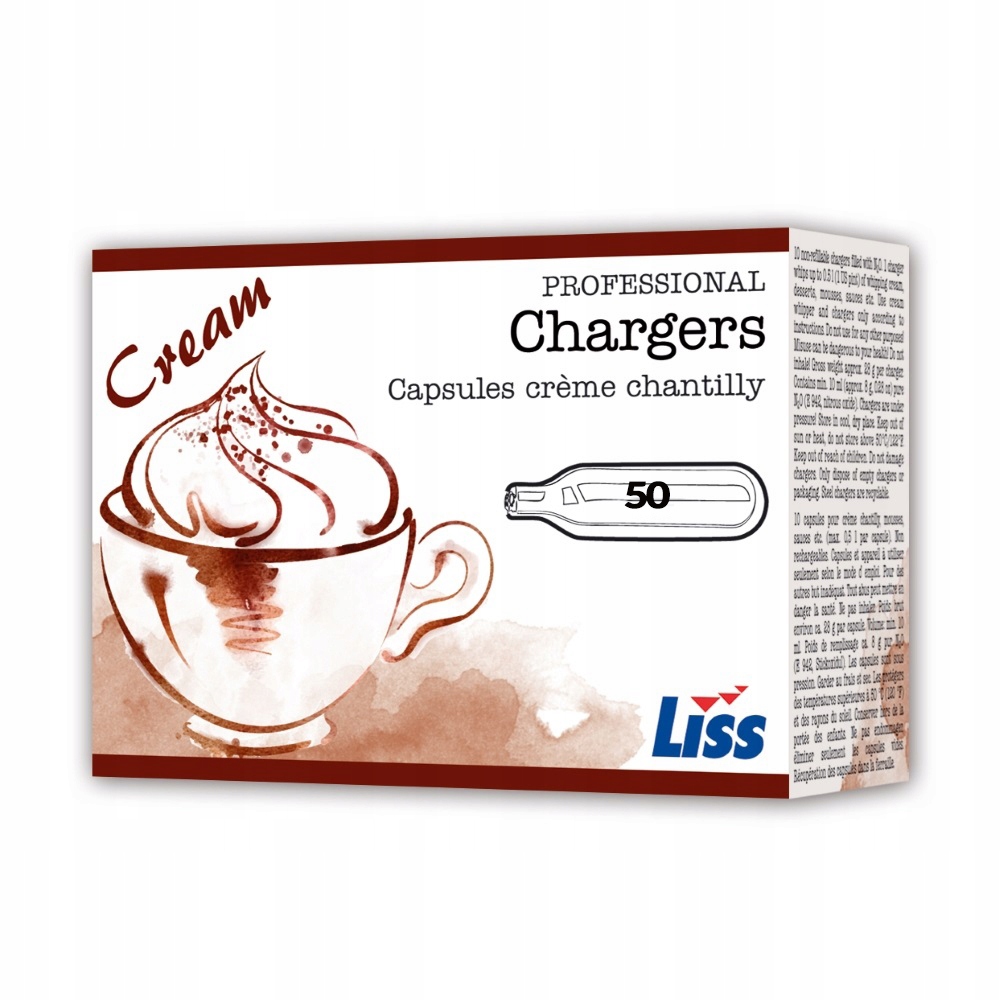 Картриджі бренду Liss для сифона для збитих вершків - Упаковка по 50 штук.