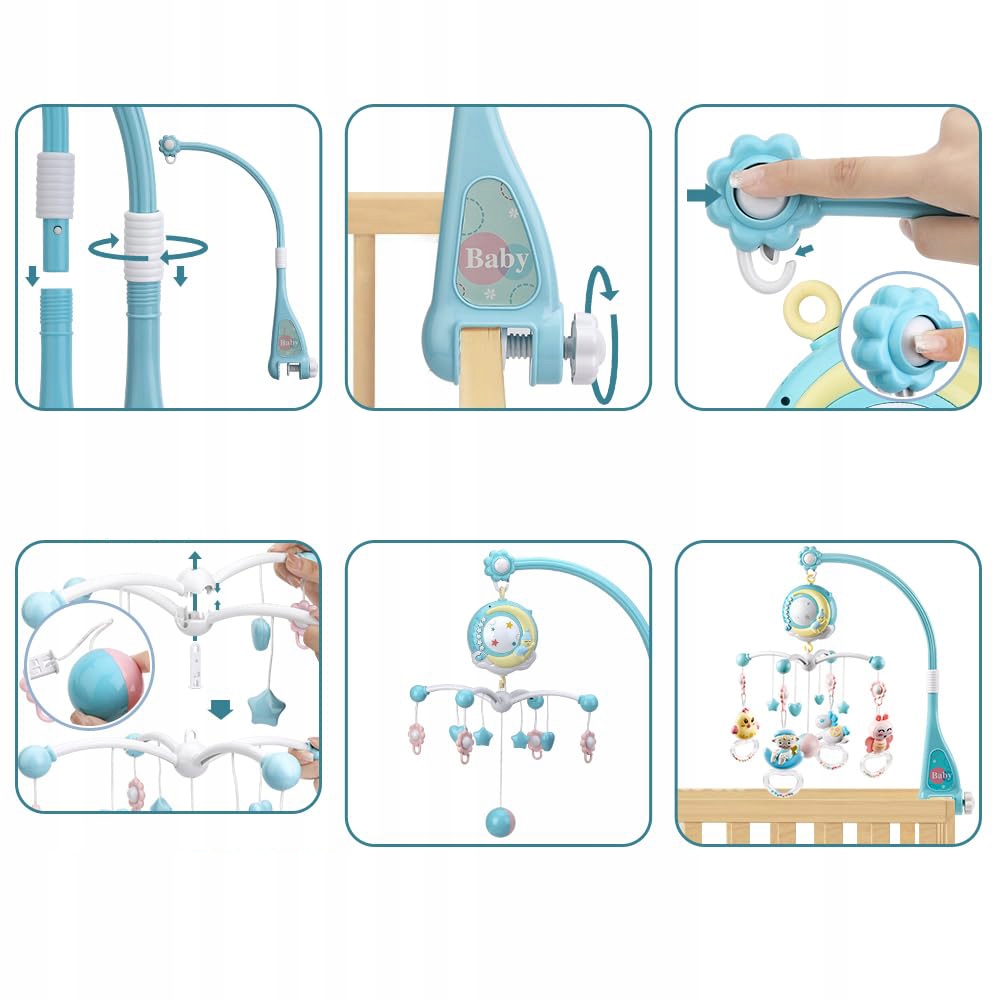 - На відміну від звичайних іграшок у ліжечко, наша знімна конструкція розвивається разом з вашою дитиною: 1) М’які тканинні іграшки, готові до гри. прорізувач 2) Портативний музичний плеєр 3) Проектор для розповіді 4) Нічник 5) Сенсорне брязкальце. Усі аксесуари відповідають стандартам безпеки ASTM F963. Плавний перехід від колискових пісень біля ліжка до гри на підлозі (на міцність перевірено понад 3 роки), що забезпечує на 200% довший термін служби, ніж стандартні музичні мобільні телефони.