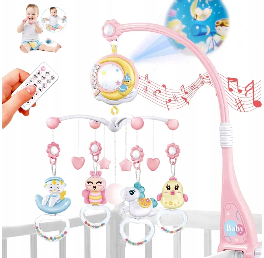 КАРУСЕЛЬ ДЛЯ ЛІЖЕЧКА З ФУНКЦІЄЮ ПРОЕКТОРА ПУЛЬТ СВІТЛОМУЗИКА ДЛЯ ДІТЕЙ
