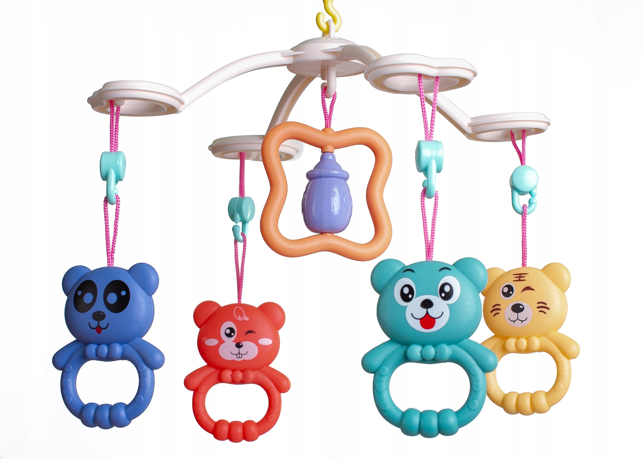 Обертові різнобарвні підвіски - веселі тварини - Вони приверне увагу дитини і подарує йому масу розваг. Підвіски знімаються і приємно брязкають.