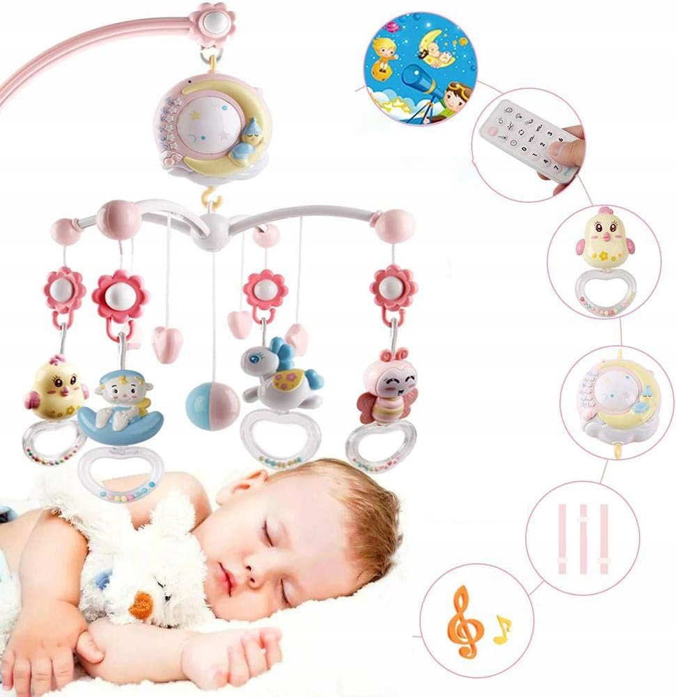 🟢 【Довготривалий партнер】: музичну скриньку та 4 електричні брязкальця на музичному ліжку можна від’єднати та використовувати як прорізувач для зубів, музичний плеєр, проектор, нічник або дитяче брязкальце відповідно. Він може супроводжувати дітей у дитинстві.