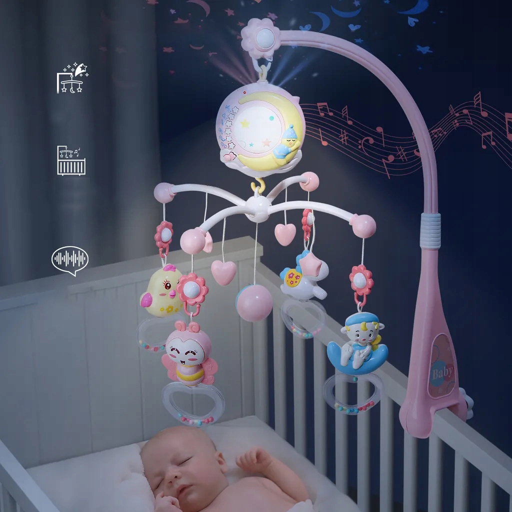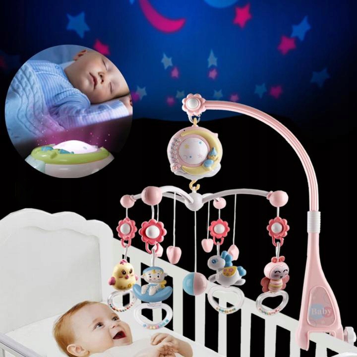 Цей музичний дзвіночок для дитячого ліжечка відображає 3 різні кольори зірок і мультфільмів, щоб допомогти вашій дитині позбутися нічних жахів.