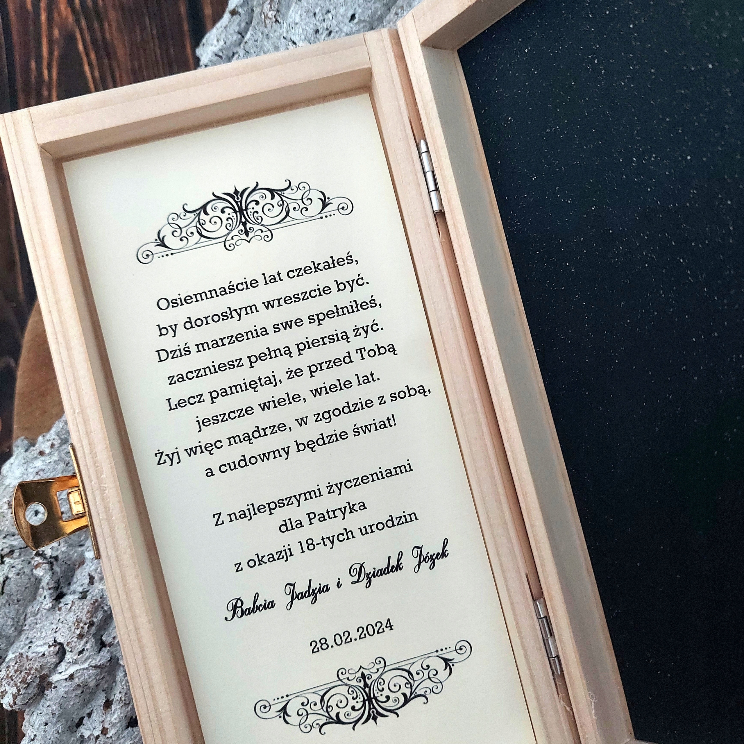 Скринька зі світлої сосни, в якій ми поставити конкретну суму. Персоналізовані побажання всередині.