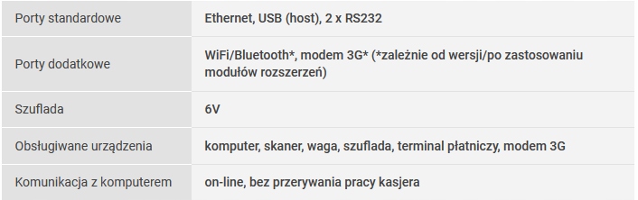 Це перший касовий апарат виробництва Lubelskie Fabryki Wag FAWAG S.A. в ОНЛАЙН версії. Він невеликий, міцний і простий у використанні, а також ергономічний і функціональний. До нього можна підключити касовий ящик, сканер штрих-кодів, ваги, платіжний термінал і комп’ютер.