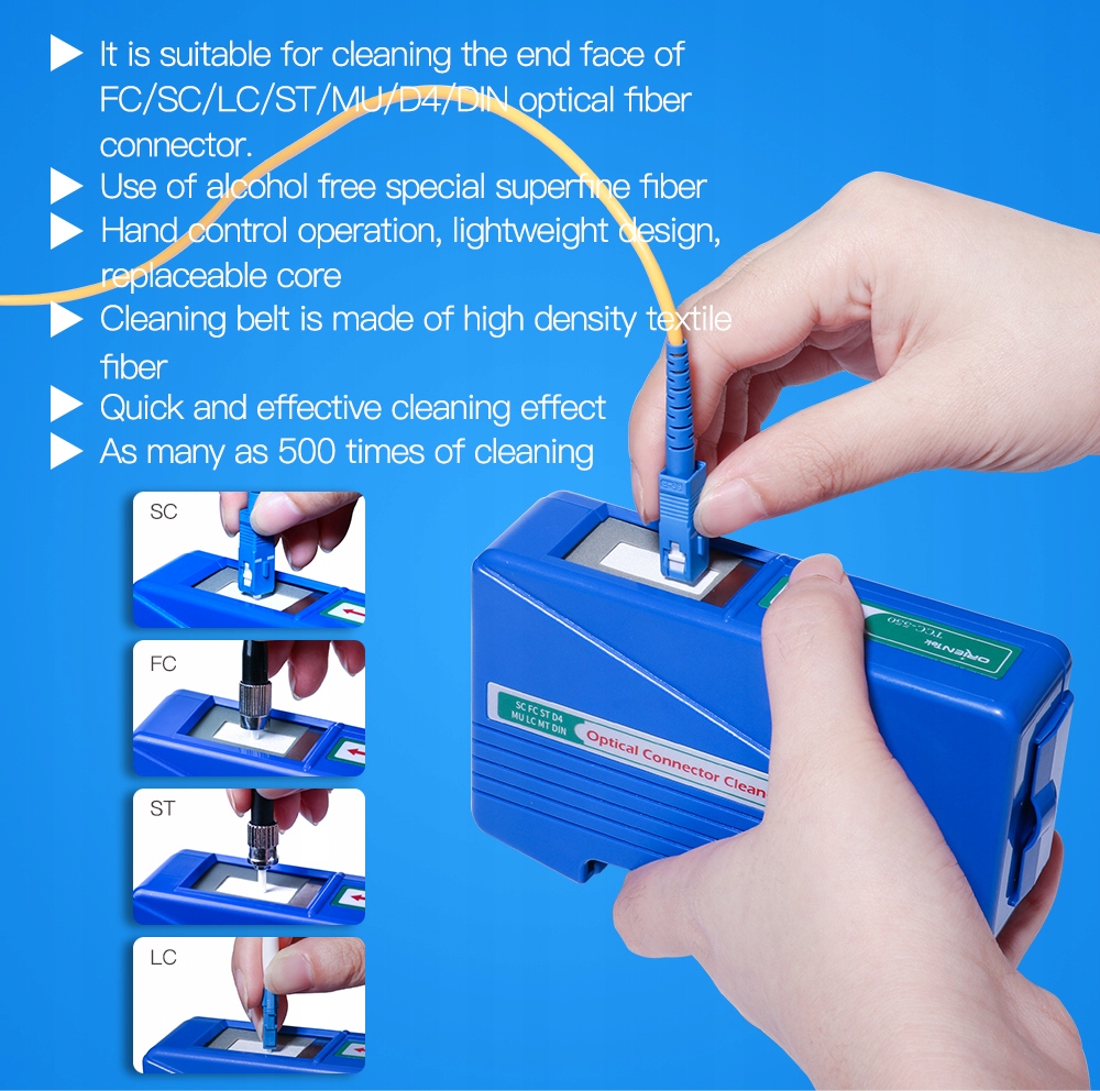 - Касета для очищення касок/волоконно-оптичних косичків