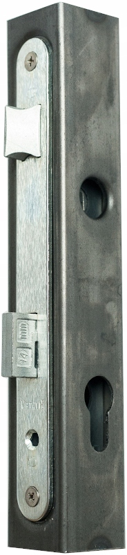 Замок повністю виготовлений з білих оцинкованих листів. Замок універсальний - підходить для правих і лівих дверей - засув пересувається після відкручування гвинта кріплення. Замок врізний на сувальди, для металевих дверей. Для використання в алюмінієвих, металевих, пластикових столярних виробах і для воріт.
