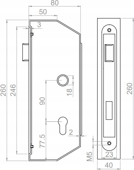 КАСЕТА З ЗАМКОМ ЗАМОК ДЛЯ ХВІРТКИ 80х40 мм