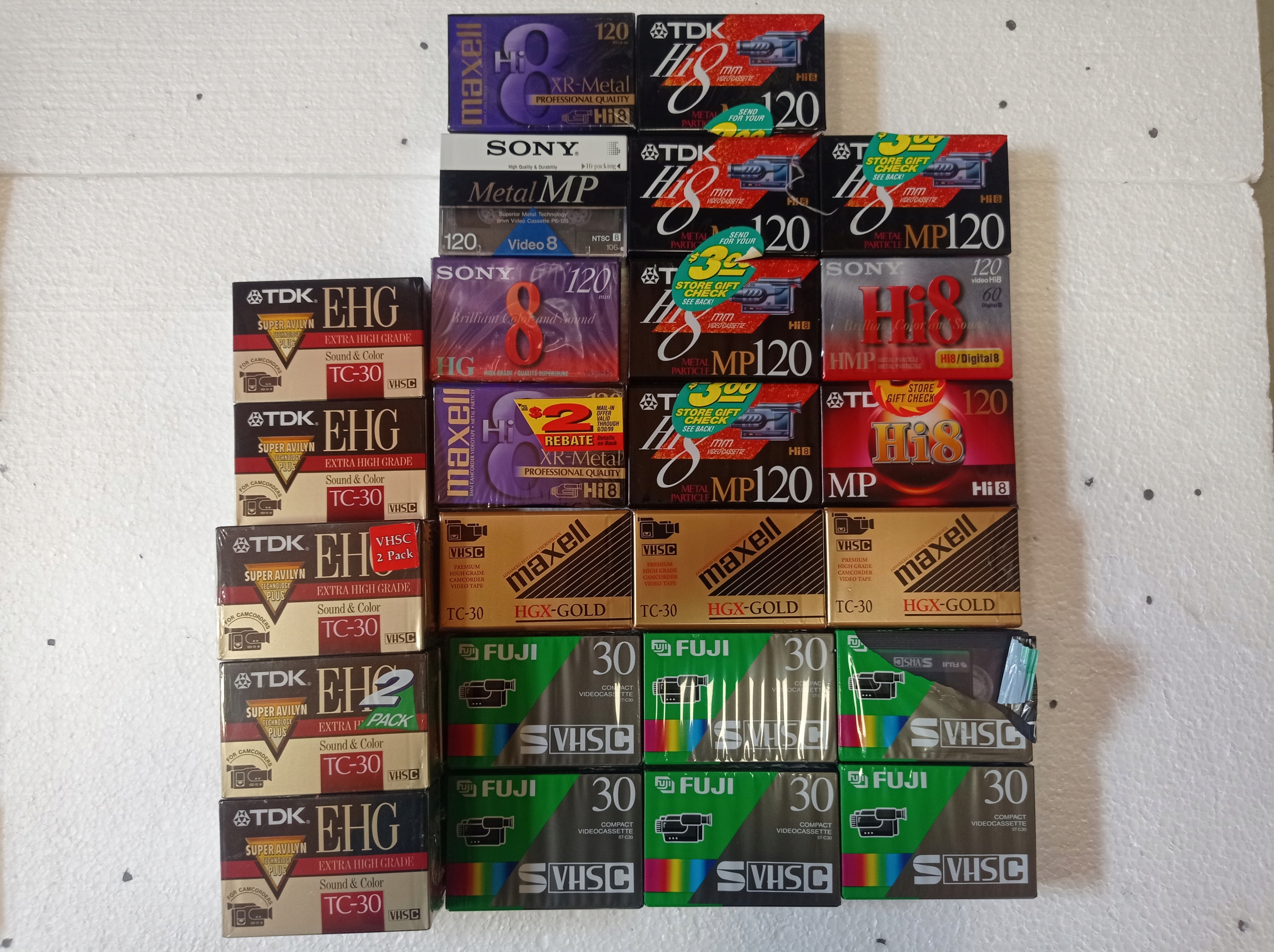 КАСЕТИ 8 ММ - VHSC + Hi8 - 28 ШТ - SONY, TDK, MAXELL, FUJI -