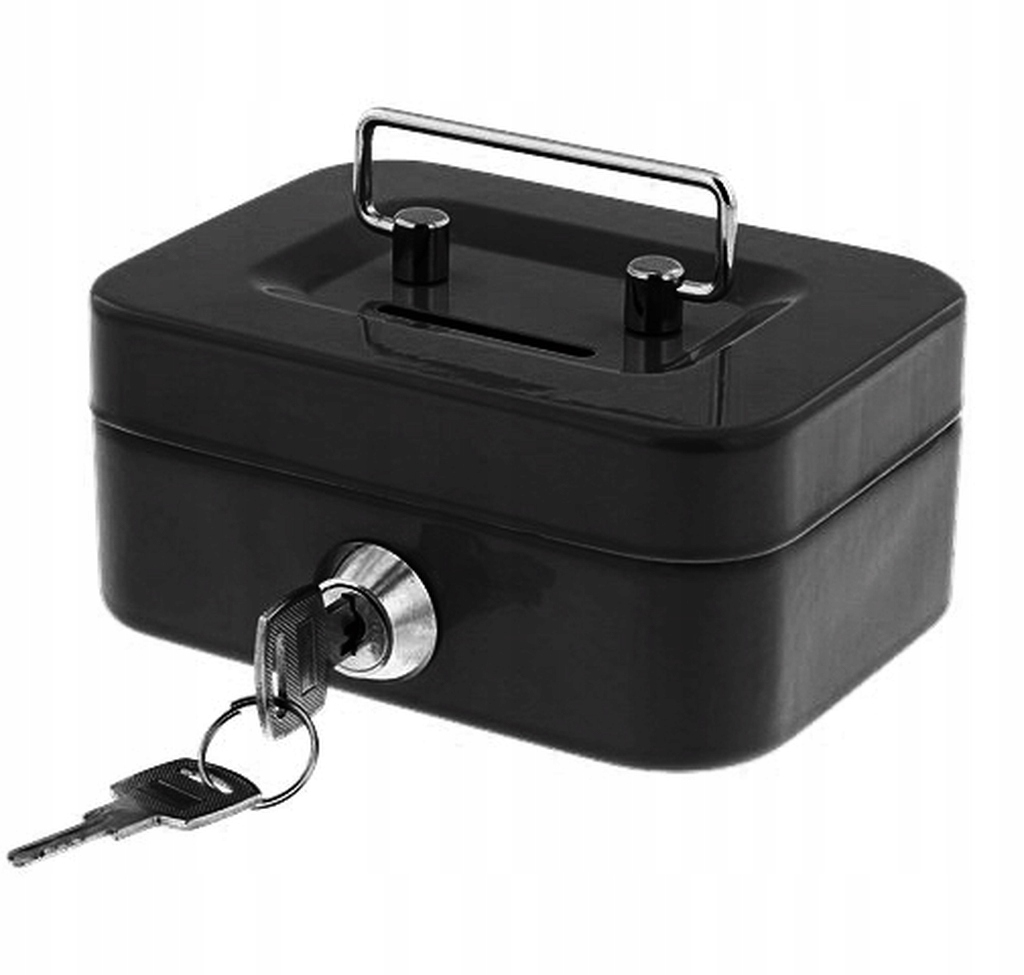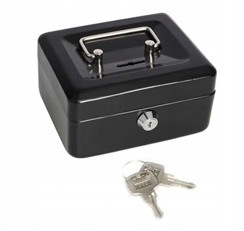 KASETKA NA PIENIĄDZE SEJF SKARBONKA NA KLUCZYK CZARNA METALOWA