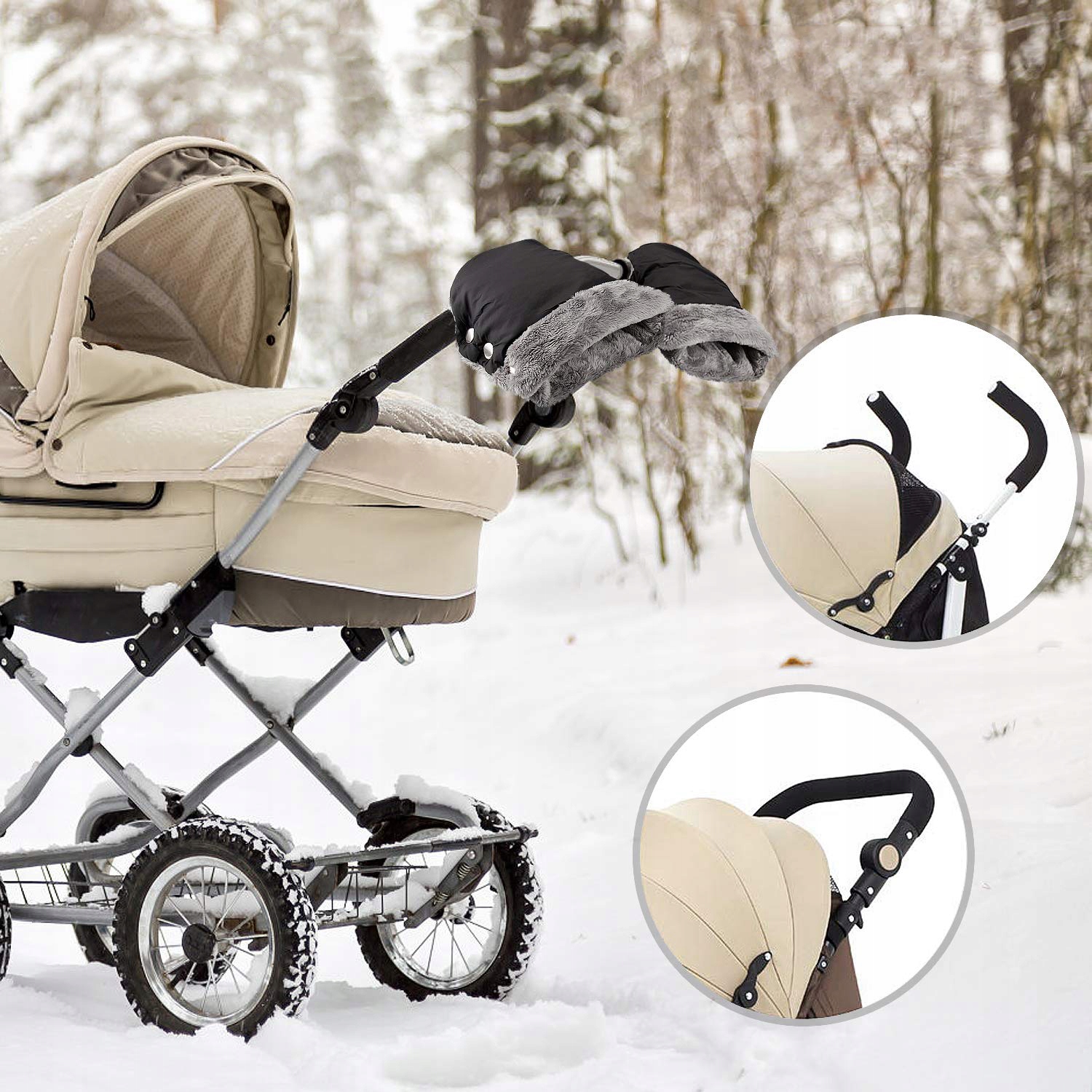 - рукавички відповідають кожному стандартному візку. Він прикріплений до ручки з засувками. Просто покладіть руки, щоб натиснути на них. Нарешті, теплі руки навіть при крижаних температурах