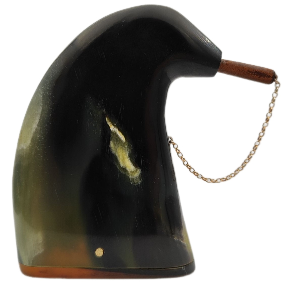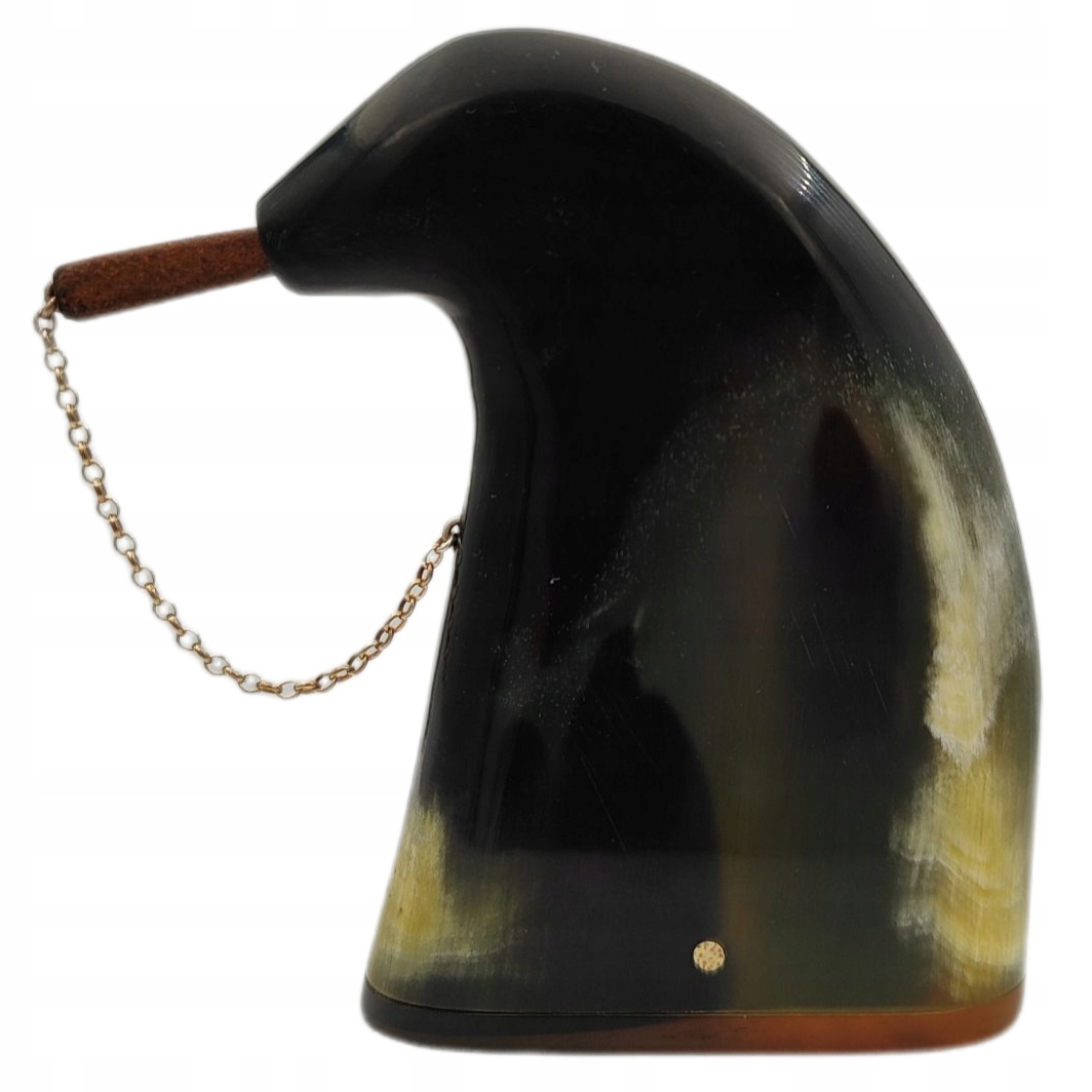 Табакерка виготовлена дуже ретельно та естетично, ретельно відшліфована та відполірована. З першого погляду видно, що це виріб з рук майстра. Гарно забарвлена, зручна, щільна, довго зберігає свіжість вмісту. Чистий і гігієнічний продукт, ріг був ретельно проварений під час виготовлення табакерки бік. Вилка зі шкіри, підвішена на металевому ланцюжку.