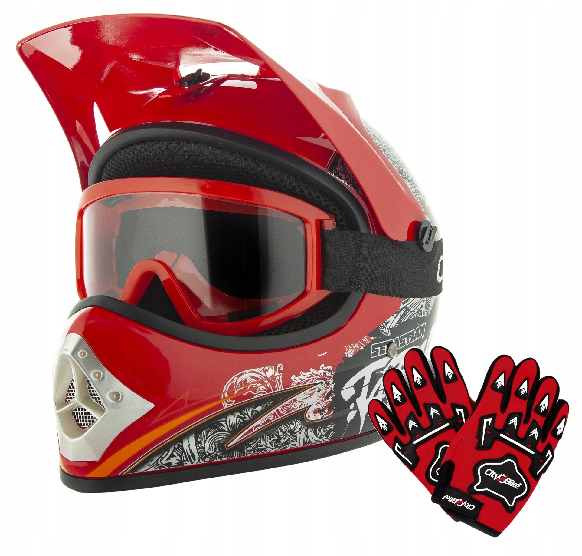 KASK CROSS DZIECIĘCY ENDURO QUAD L+RĘKAWICE+GOGLE
