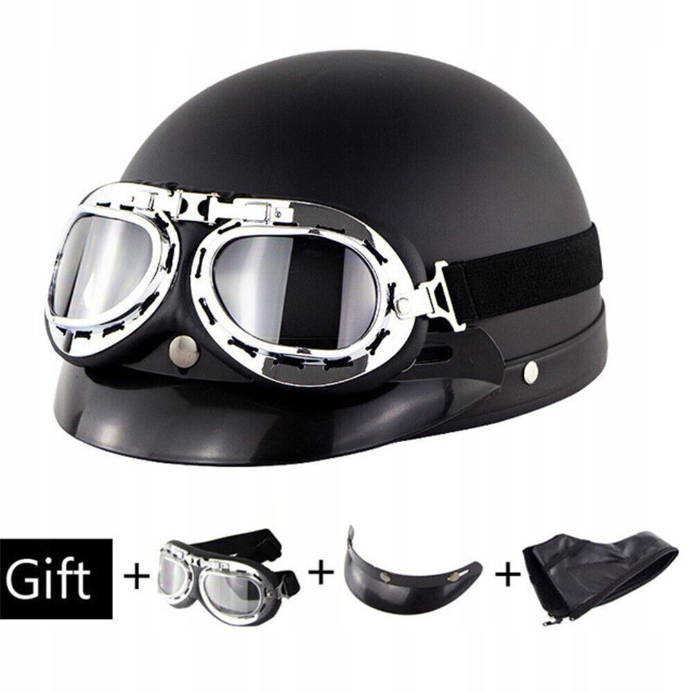 KASK SKÓRZANY MOTOCYKLOWY RETRO OTWARTY HEŁM PÓŁTWARZOWY DO SKUTERA + GOGLE