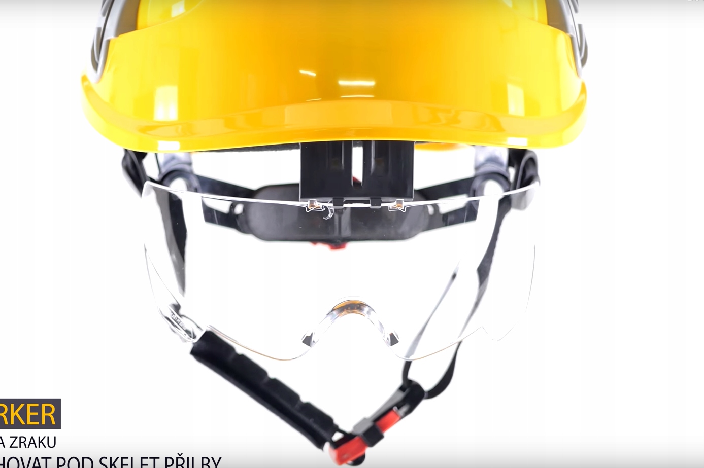 Каска будівельна з окулярами ALPINWORKER якість CERVA червона HV R. 53-66 см