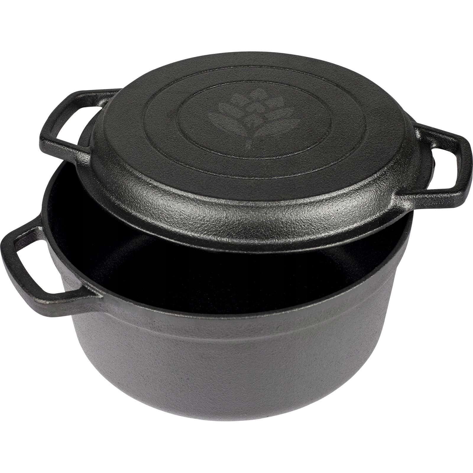 - Два в одному - чавунна каструля з ручками і кришкою з функцією сковороди-гриль - це посудина, яку ви повинні мати на своїй кухні! Завдяки цьому ви не тільки готуватимете смачні страви в одній каструлі, але й смажите та запікаєте улюблені страви.