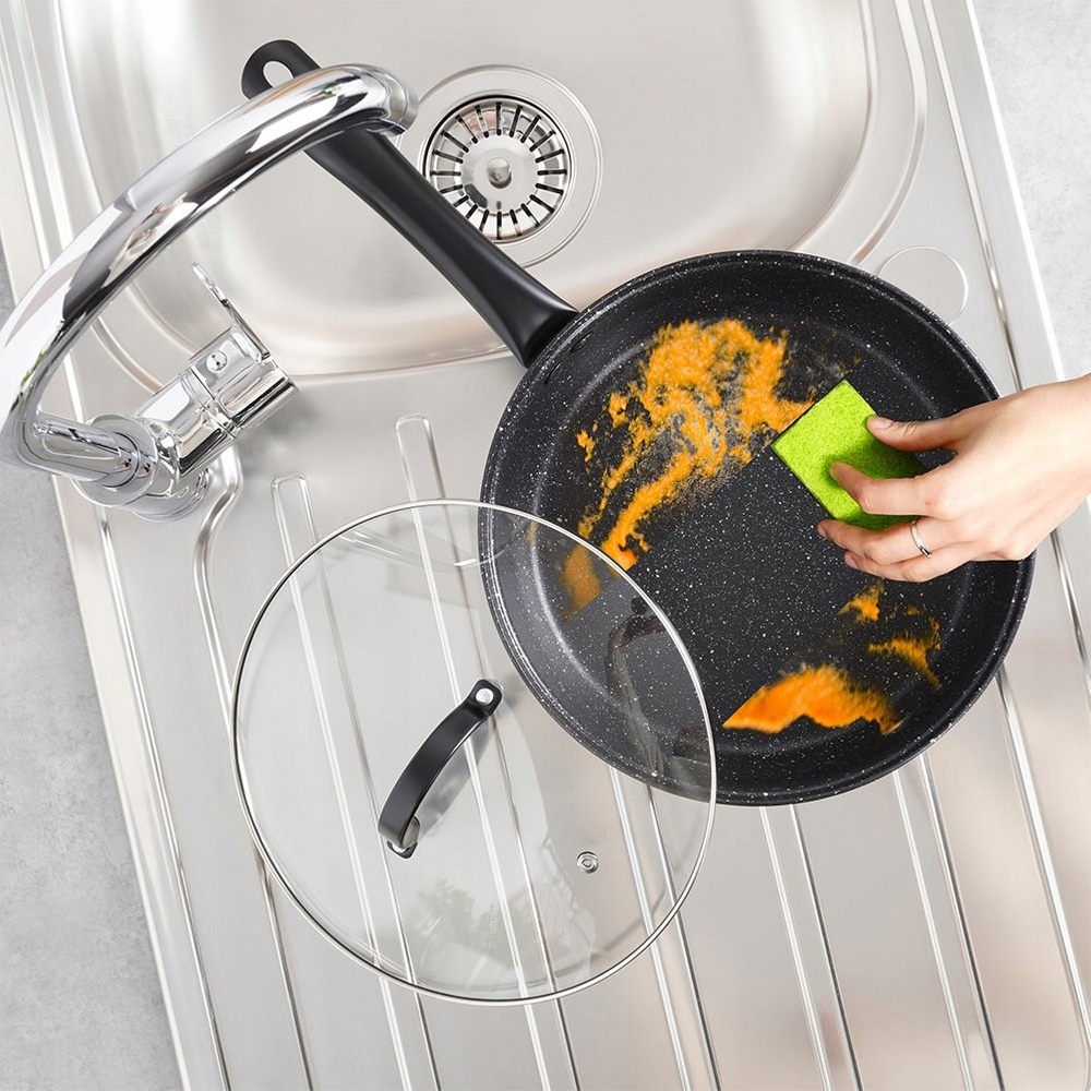 ✅ ФУНКЦІОНАЛЬНІСТЬ - набір каструль різних розмірів забезпечує універсальність під час приготування їжі. Вони ідеально підходять для приготування різноманітних страв, таких як супи, соуси та другі страви. Сковорода має велику жарову поверхню, а завдяки антипригарному покриттю ідеально підходить для смаження різних видів їжі.
