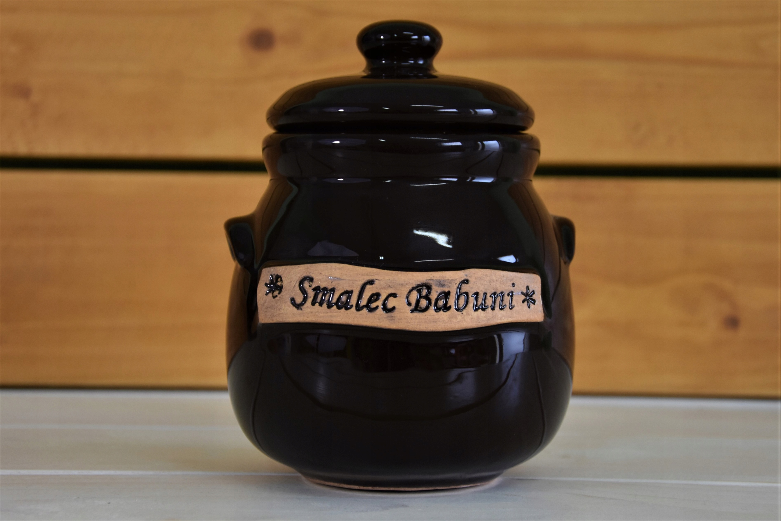 оригінальний керамічний керамічний Гарнецзер з написом бабуся сало з високоякісної кераміки, виготовленої з натуральної кам'яної глини. Завдяки використанню сировини високої якості, вона повністю безпечна в контакті з їжею. Горщик був покритий твердим шаром емалі, який забезпечує його винятковою міцністю та стійкістю до стирання.