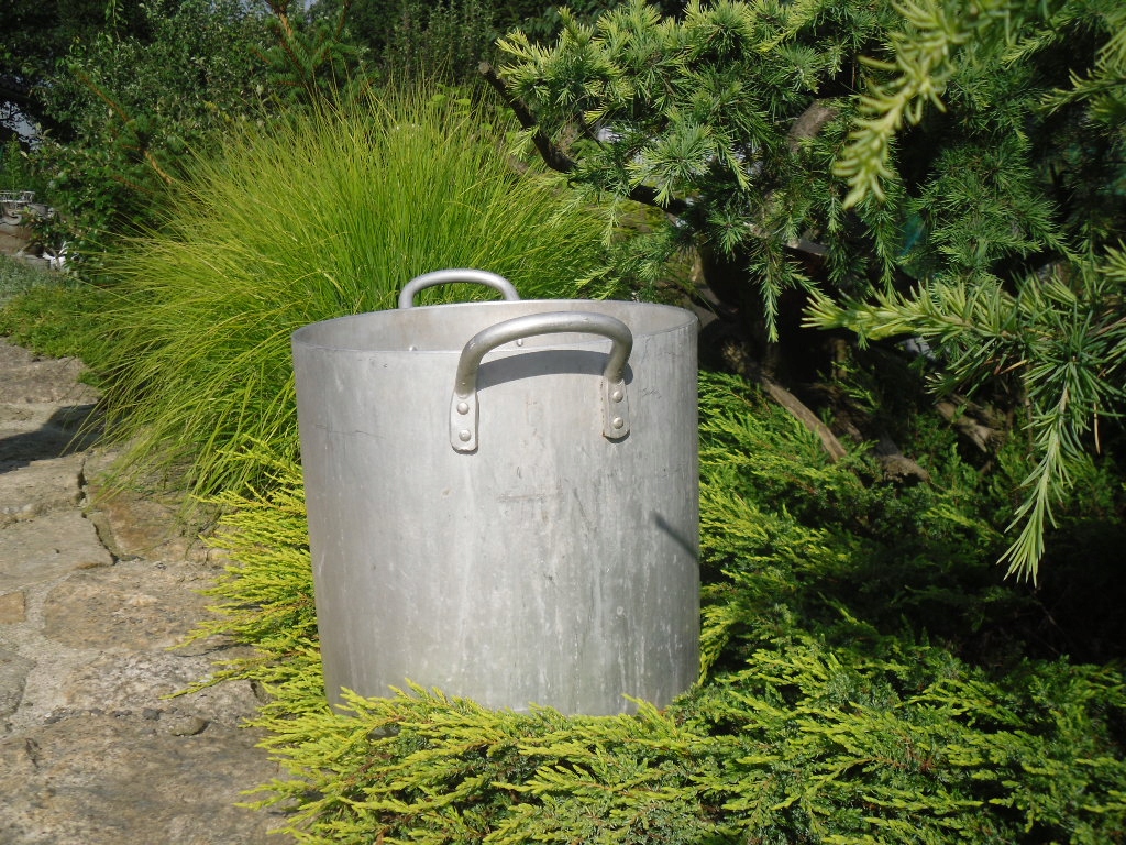 Ласкаво просимо на мій аукціон. На аукціонах я зазвичай пропоную вам речі часів Польської Народної Республіки. На цьому аукціоні я пропоную ОРИГІНАЛ стару, дуже велику алюмінієву каструлю. Каструля велика і дуже гарна, має дві товсті ручки/ручки, теж з алюмінію. Горщик НЕ пом'ятий, без видимих пошкоджень, тільки зміна кольору, типова для алюмінію, подряпини, в цілому горщик в дуже хорошому стані. Герметичний горщик. Горщик тільки вимитий і нічим не оброблений. Ймовірно, місткість близько 30 літрів. Дивіться фотографії.