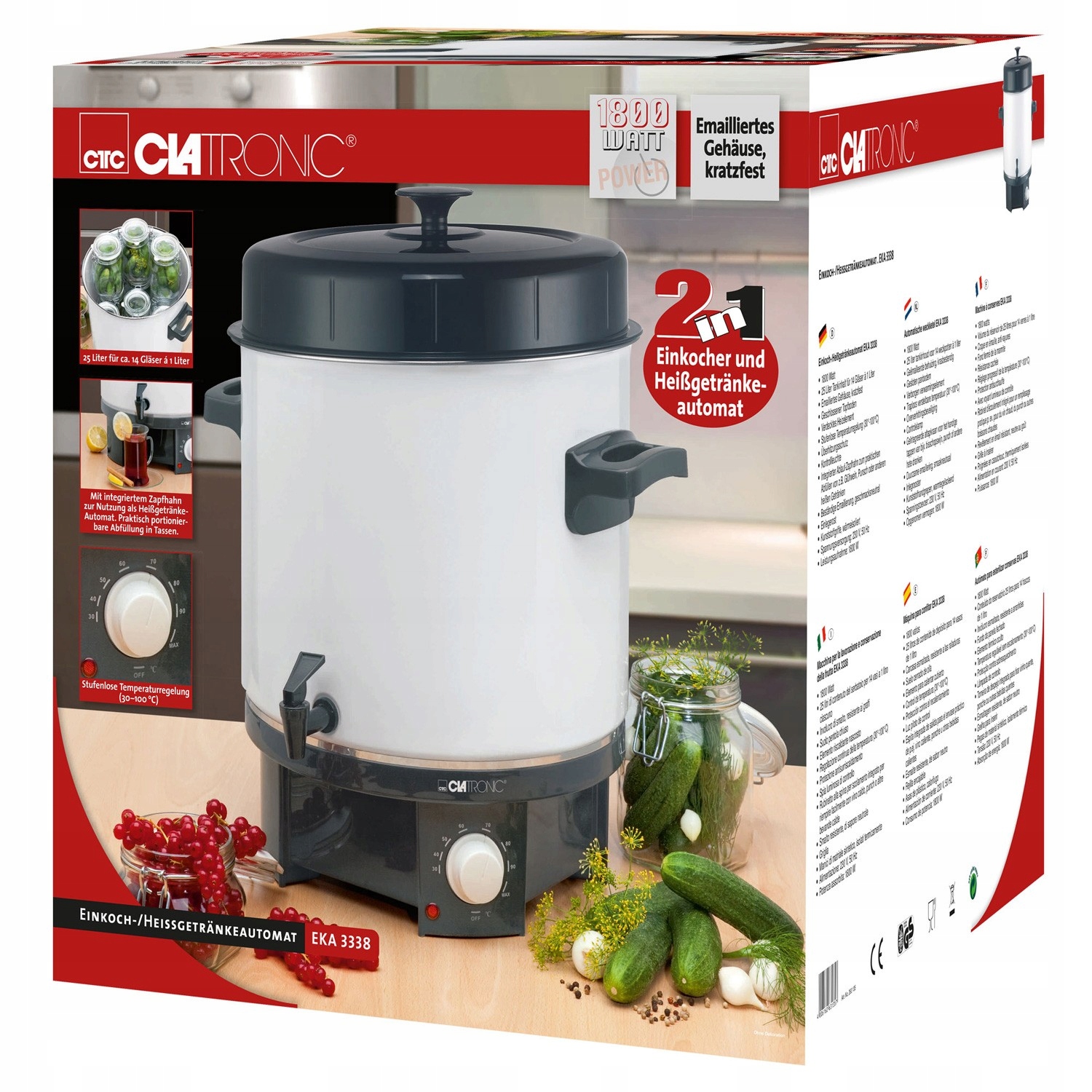 Електрична каструля Clatronic CTC 263135 об'ємом 25 літрів ідеально підходить для приготування баночок консервації. Крім того, пристрій оснащений краном для наповнення, наприклад, глінтвейном, пуншем чи іншими гарячими напоями.