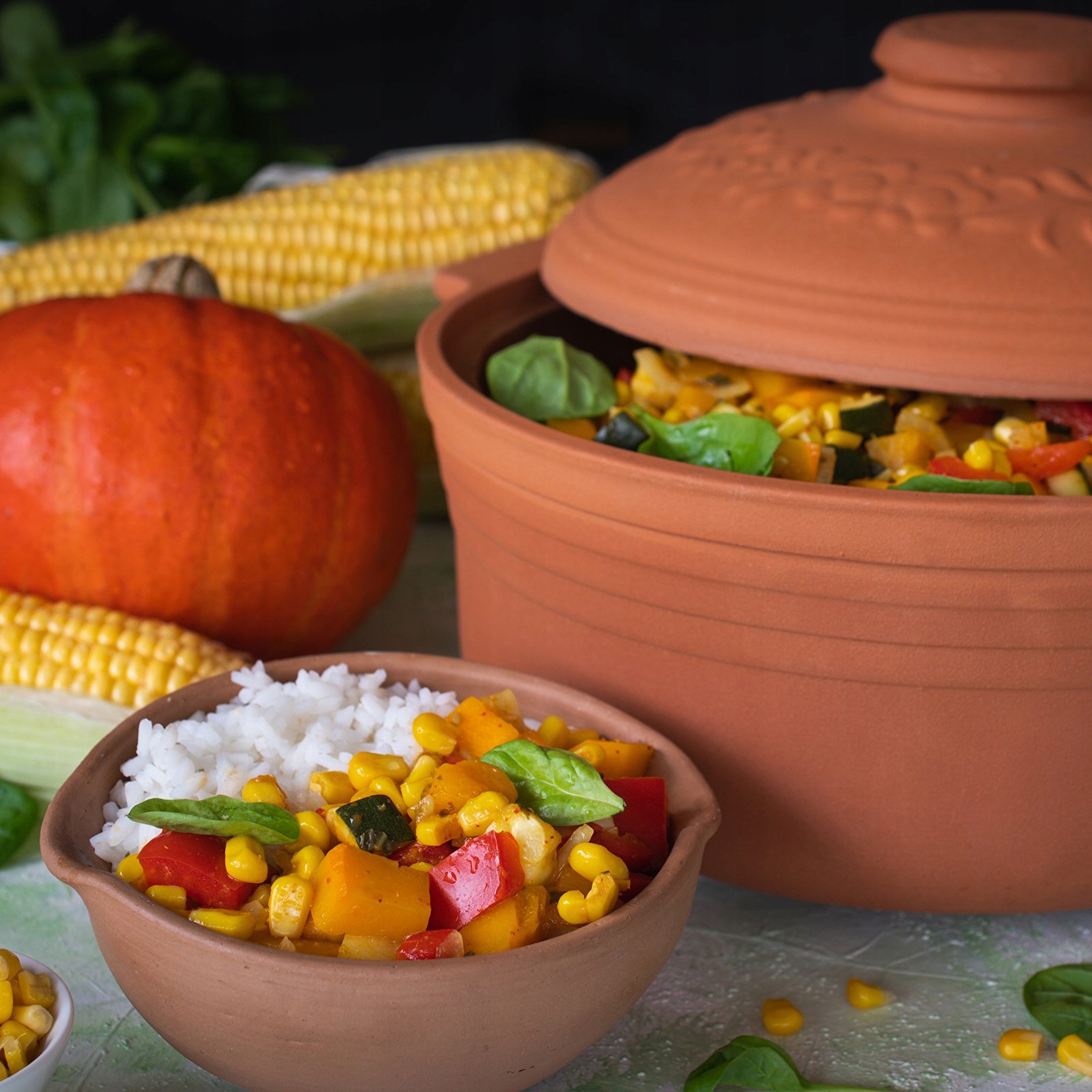 Круглий римський горщик об’ємом 4 л – це натуральна посудина з обпаленої глини. Його пориста структура дозволяє готувати здорову їжу в атмосфері пари. Використовуючи римську каструлю, ви можете готувати їжу без додавання жиру, що корисно для нашого здоров'я і сподобається людям, які піклуються про своє харчування. Страви з римського горщика настільки смачні, що їх залюбки їстимуть і діти.