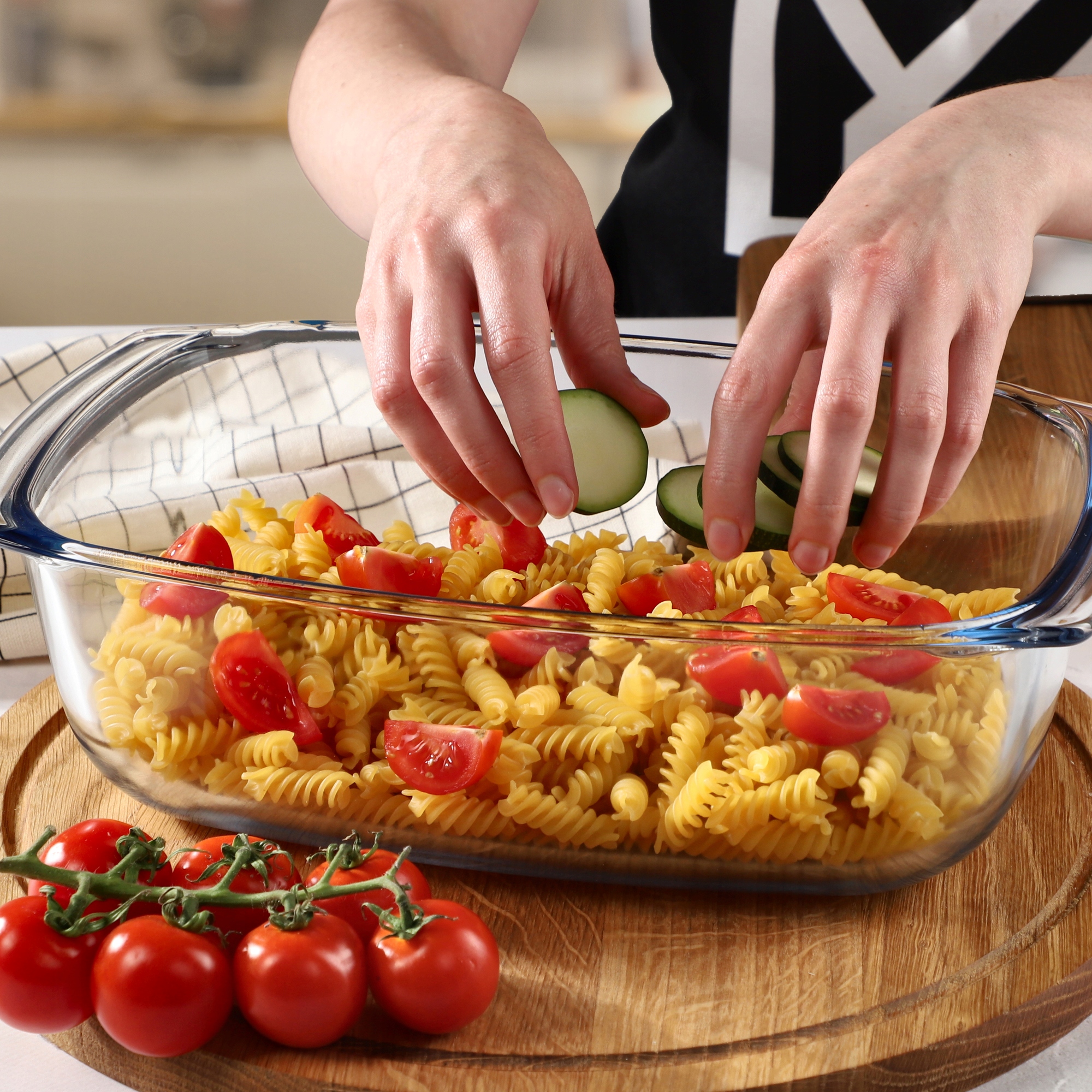 ✅БАГАТОФУНКЦІОНАЛЬНЕ ВИКОРИСТАННЯ – Ви можете використовувати скляну форму для випічки різними способами. Ідеально підходить для смаження м'яса, випічки хліба або тушкування їжі. Міцне скло дозволяє використовувати жаровню в духовці, мікрохвильовій печі, а також мити в посудомийній машині.