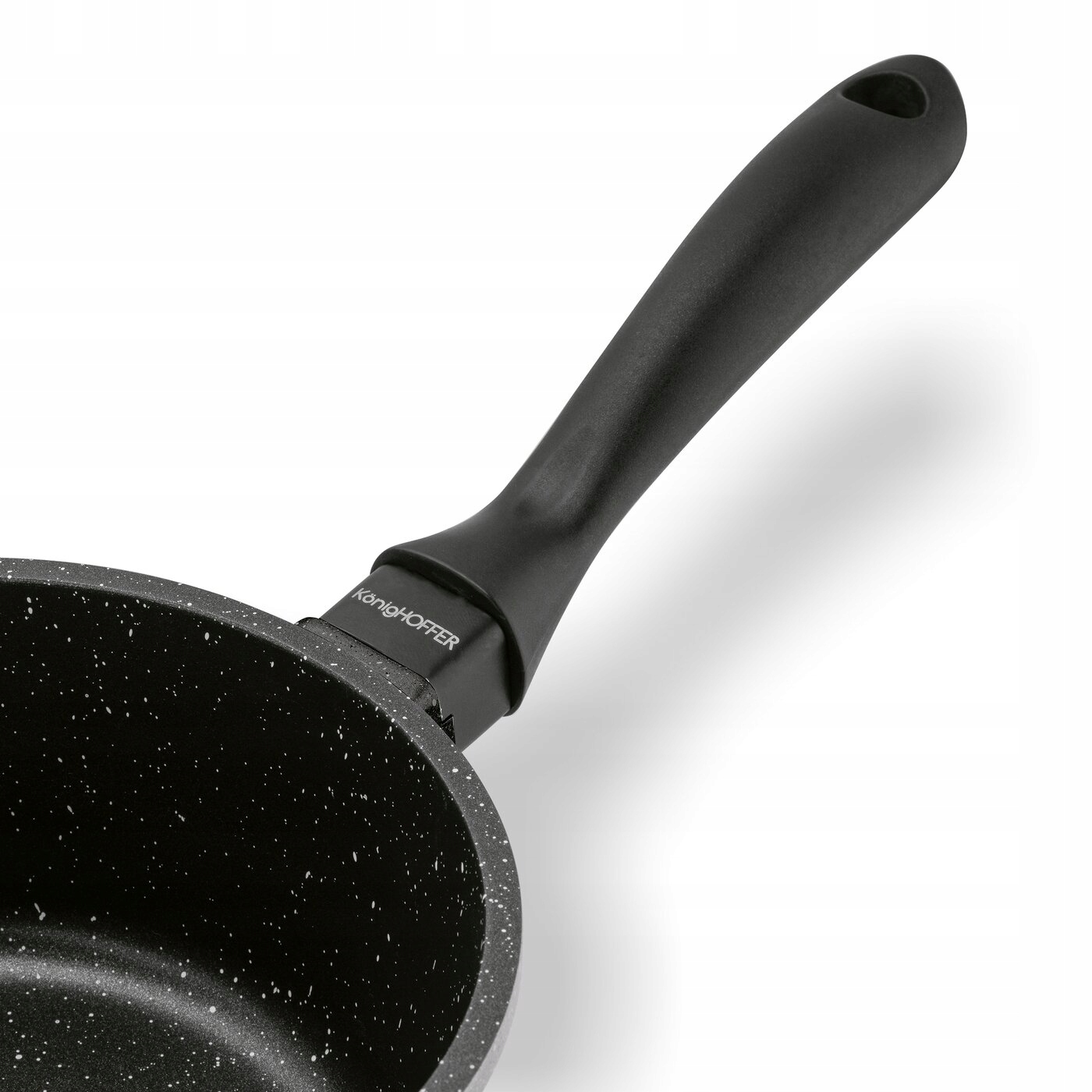 Інша інформація: - литі каструлі, виготовлені з алюмінію з антипригарним покриттям під мармур, - нагвинчувана ручка в каструлі, виготовлена з чорного soft touch пластику з отвором для підвішування. , - скляні кришки зі сталевим бортиком і вентиляційним отвором, - ручки зі сталевими кришками, пригвинчені, - кришки для ручок для матеріалів, - робота каструль на індукційній плиті залежить від відповідності розміру індукційного дна та робочого поля плити. (використовуйте каструлю з невеликим діаметром дна на невеликому варильному полі плити)