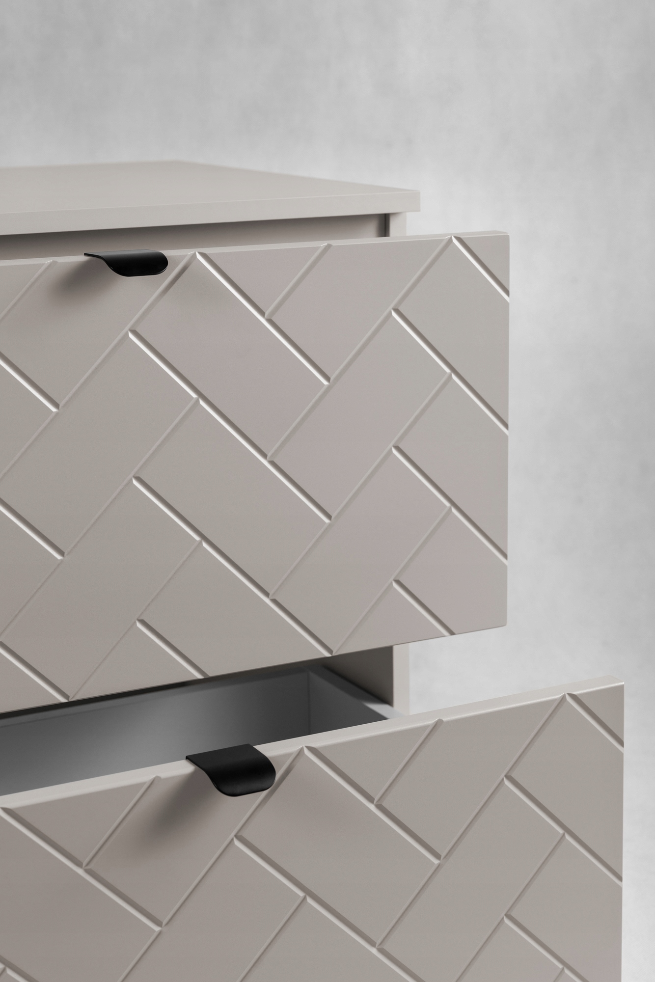 Колекція MADIS для ванної кімнати - це поєднання унікального дизайну та функціональності, розробленої для найвимогливіших користувачів на увазі. Його вирізняє надзвичайно тонкий візерунок у формі ялинки, який надає меблям неповторного вигляду та додає елегантності інтер'єру.