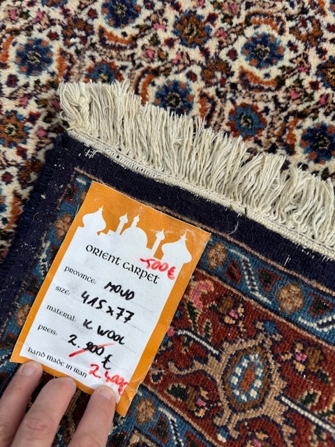 Kaszmirowy chodnik dywan perski r.tkany Iran Moud 415x77 galeria 14 tyś