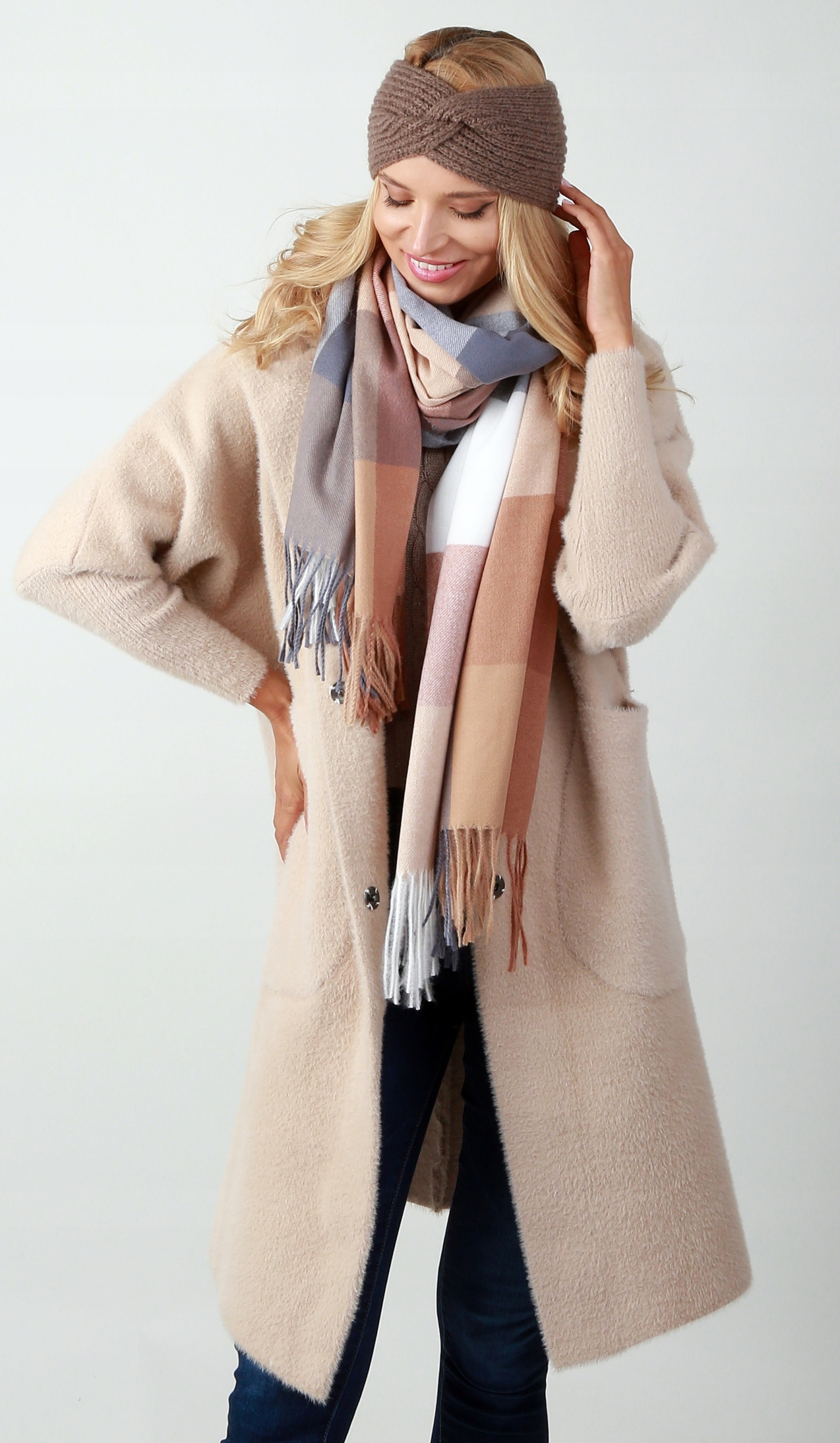 KASZMIROWY SZALIK KRATA PIĘKNY DUŻY SZAL MODNY DAMSKI SZAL NA PREZENT WZ1