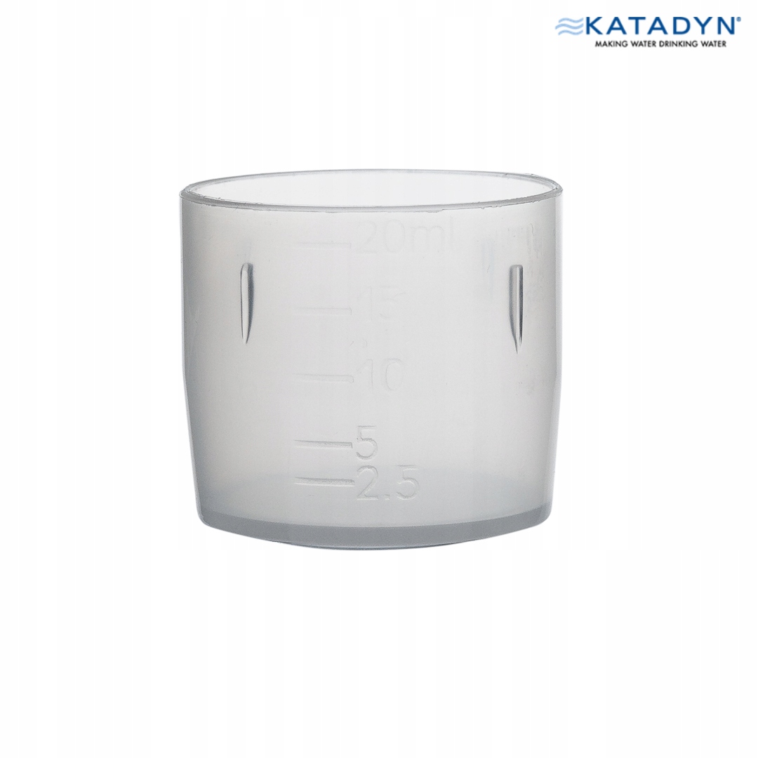 Велика пляшка об'ємом 100 мл, розрахована на 1000 л води. Міцний флакон з небиткого матеріалу, оснащений дозатором для відмірювання крапель. Мірний стакан (стакан) дозволяє точно відміряти 2,5, 5, 10, 15 і 20 мл продукту.