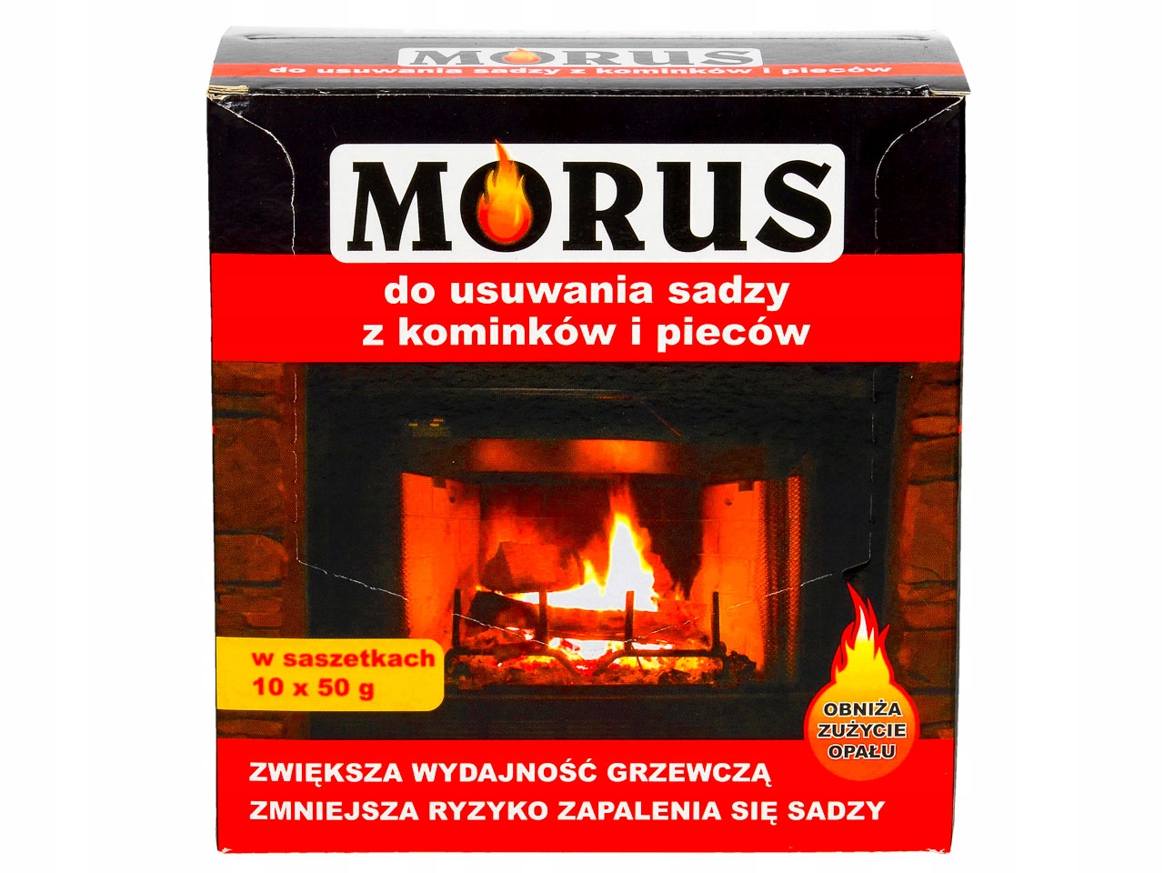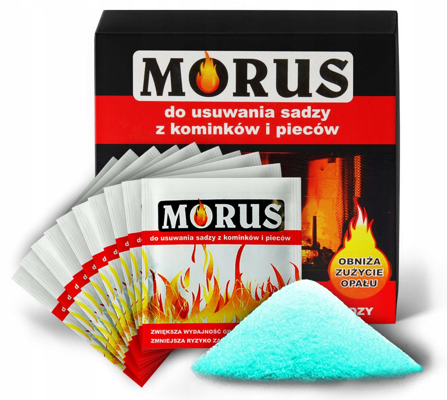 Морус для сажі це препарат для видалення сажі, що утворюється в камінах і димоходи. Мінеральні солі, що містяться в ньому, під дією високої температури розкладаються на речовини з каталітичними властивостями, які значно прискорюють процес горіння сажі та смолистих відкладень.