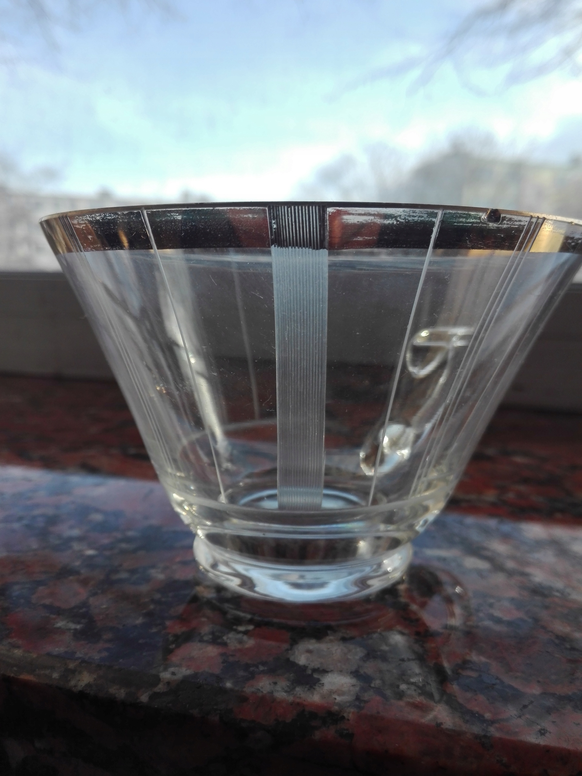 - Склянка гарної форми та з прикрасами в стилі арт-деко.