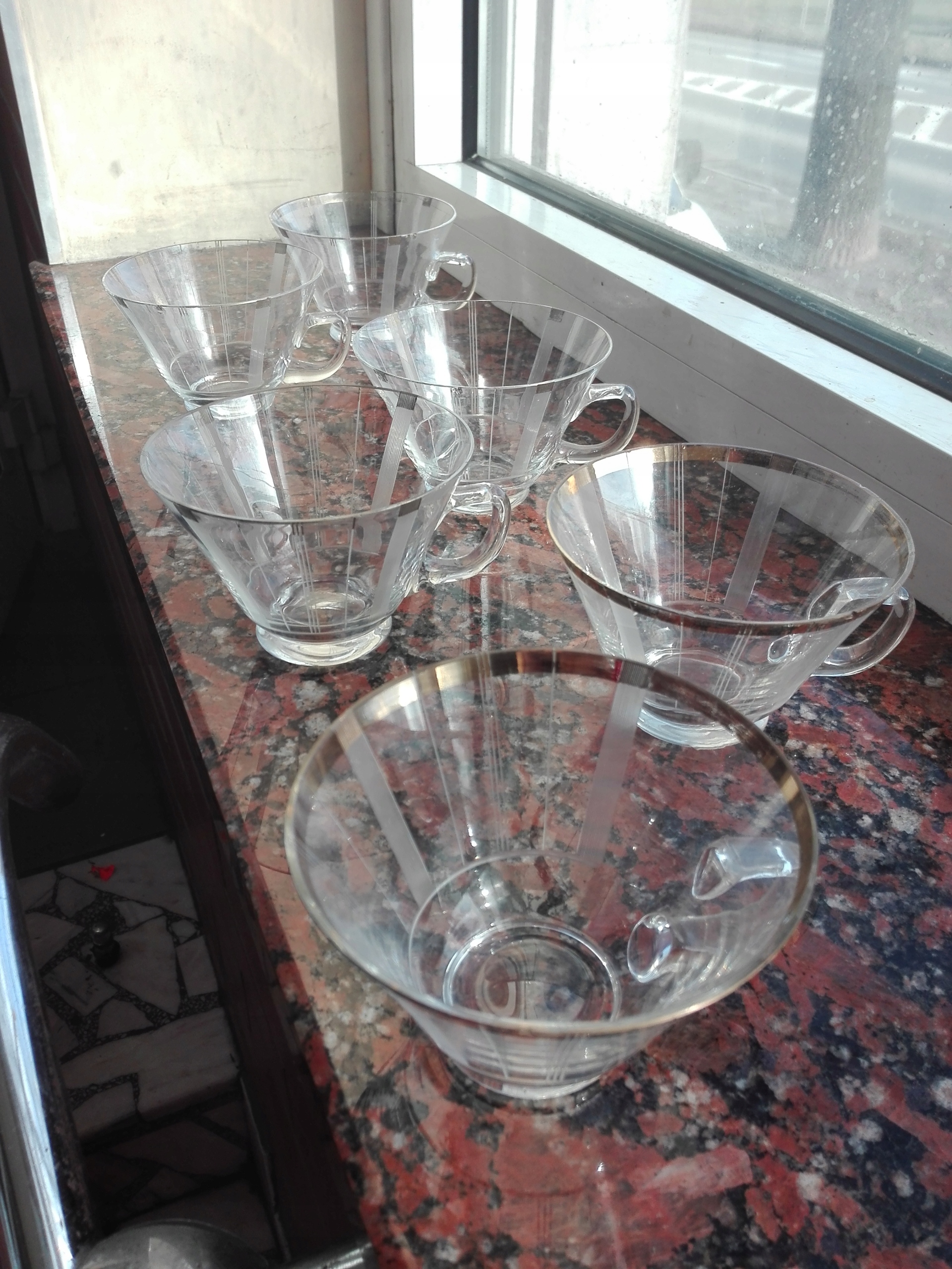 - Набір із 6 чашок, виготовлених у 1937-39 роках на скляній фабриці "HORTENSJA" у Пйотркуві-Трибунальському.