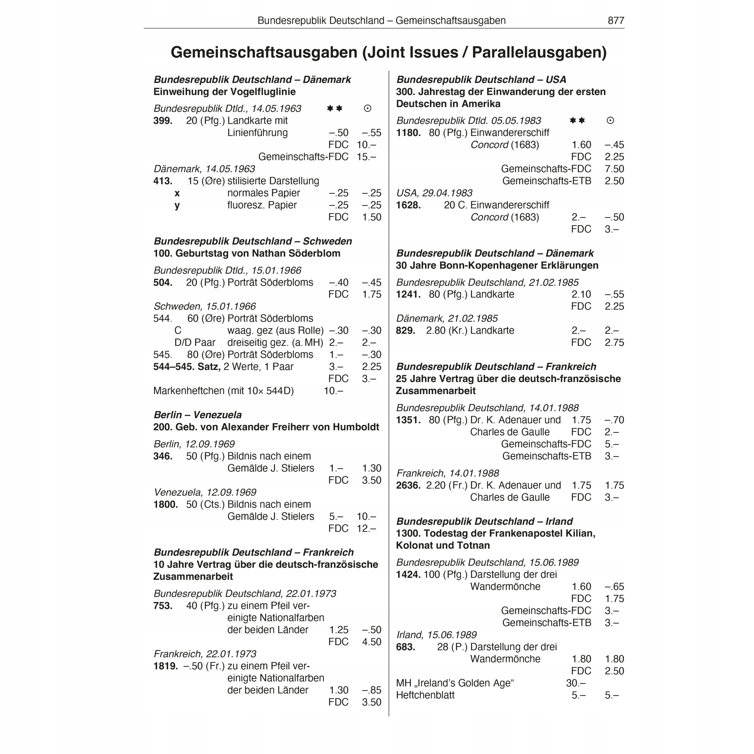 Включає всі німецькі випуски з 1849 року до наших днів разом із додатками, напр. Саар, WM Гданськ, Мемель, колонії, окупаційні зони - генерал-губернаторство.