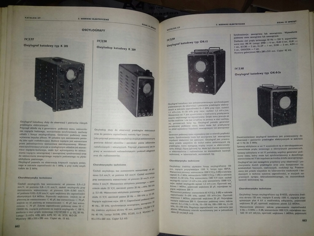 КАТАЛОГ машин, приладів КТ, Технічний штаб Польської Народної Республіки, Осцилографи, 1964 р.
