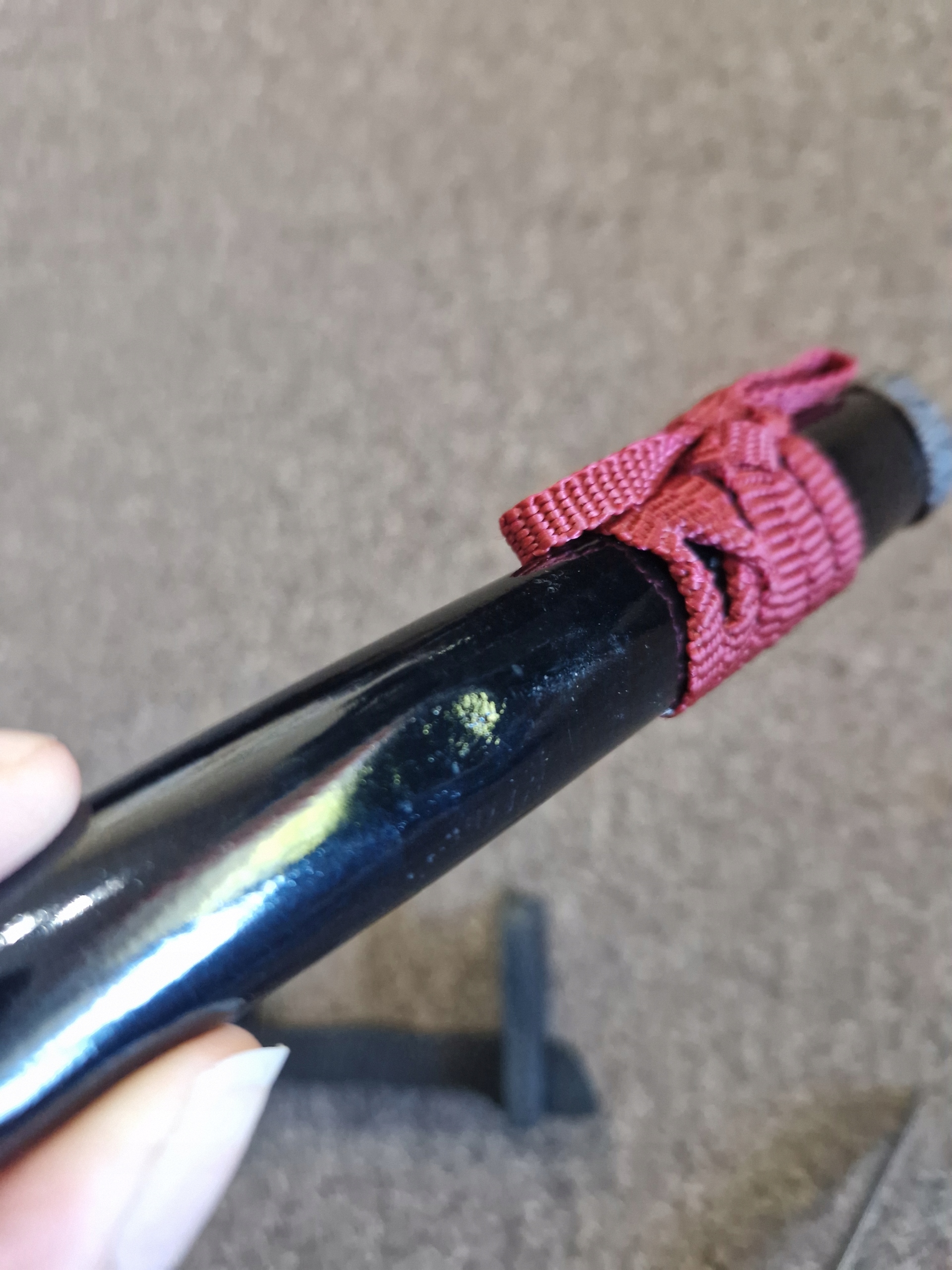 ОПИС ПОШКОДЖЕННЯ: ВІДСТІЛЕНЕ ЛЕЗКО В ПІХНАХ, ЗЛАМАНИЙ КІНЕЦЬ ЛЕЗА, ПОЧИРЕННЯ НА ПІХНАХ