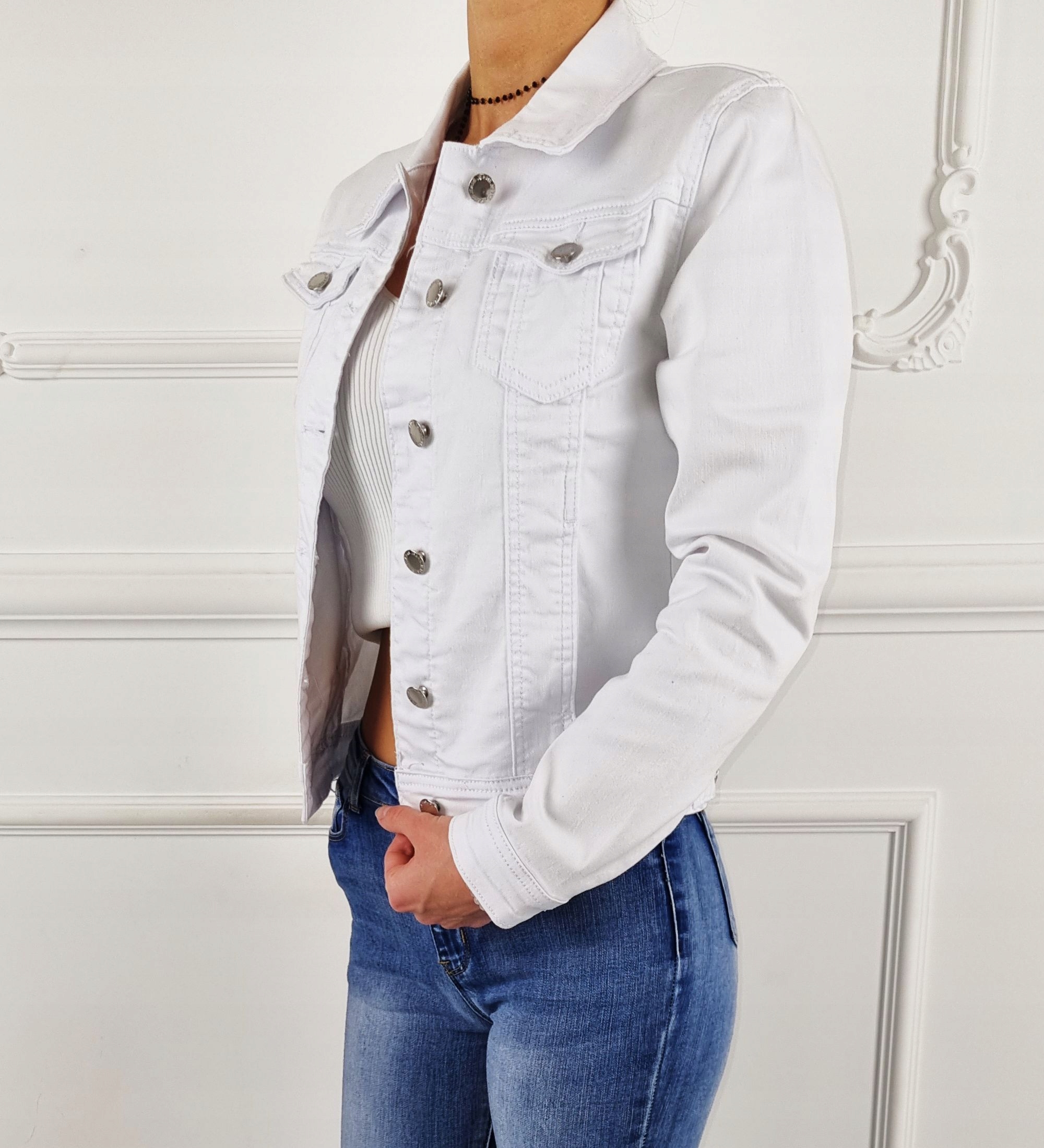 Біла джинсова куртка, можна використовувати з будь-яким стилем, як з класичними джинсами і чорною футболкою для повсякденних виходів, так і з жіночними сукнями, додаючи їм рокового характеру. Це однозначно must have в кожному гардеробі!
